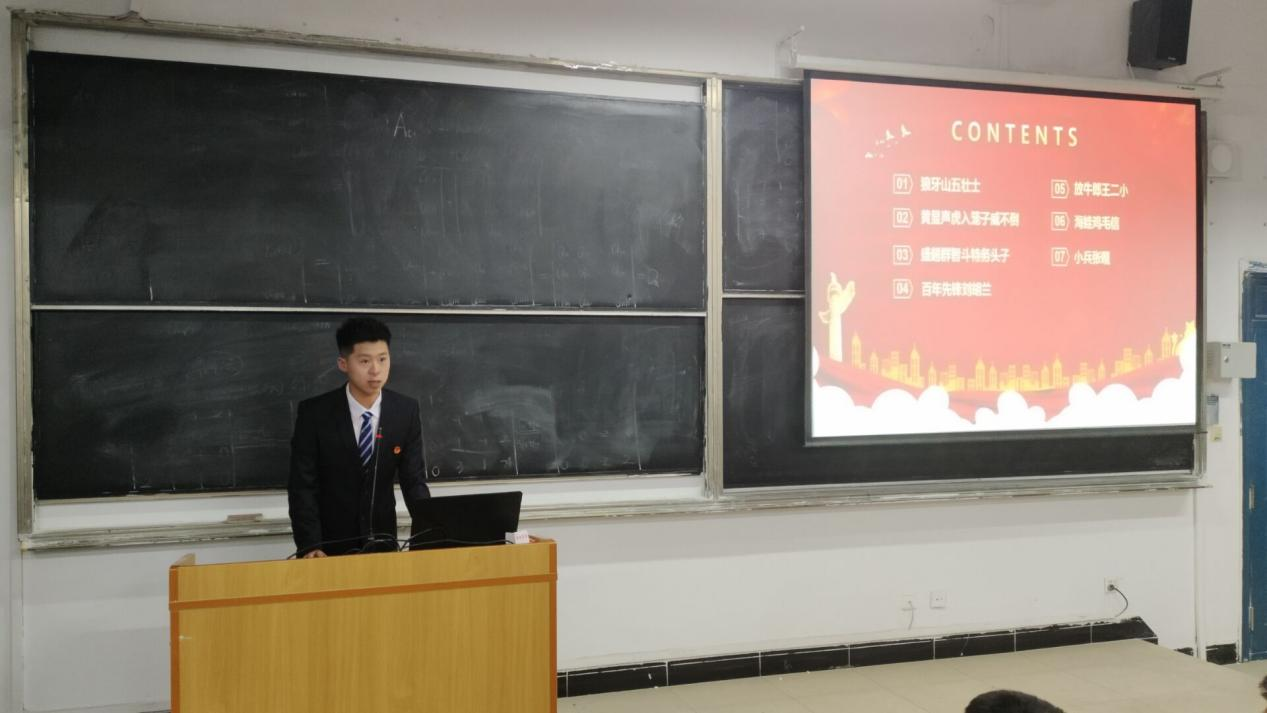刘铭禹同学以“小故事”阐释“大道理”,深入挖掘红色革命事迹,引导同学们共同追寻红色记忆、倾听红色故事、感悟红色精神,以诚挚的敬意和深切的缅怀之情,祭奠革命先烈,传承红色基因,并倡导共青团员要学习弘扬伟大建党精神,为崇高理想信念不懈奋斗。