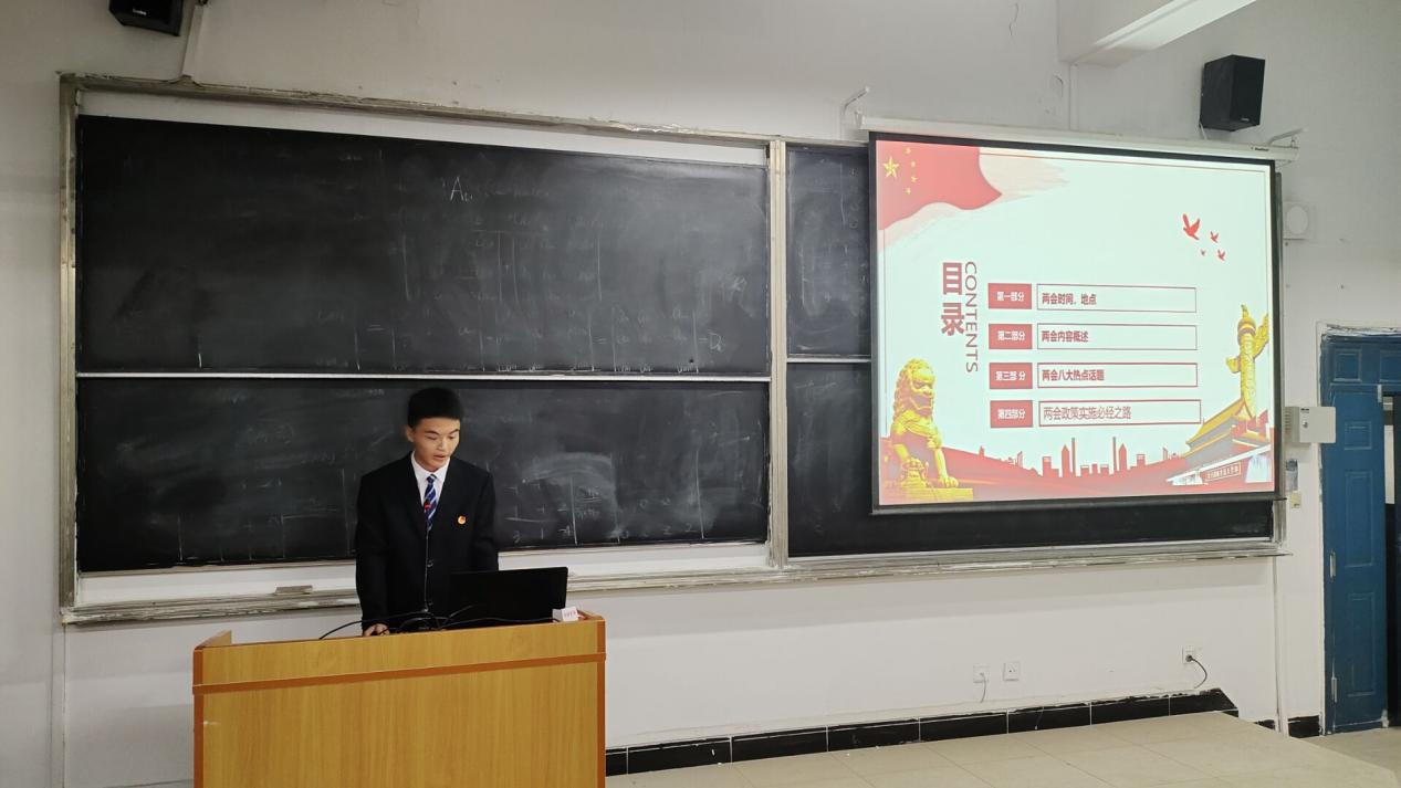 第一位宣讲人李秋怡同学总结了中国共青团百年团史的光辉历史,以PPT的形式生动的为同学们展示了中国共青团的发展阶段、历史事件及十八次会议。