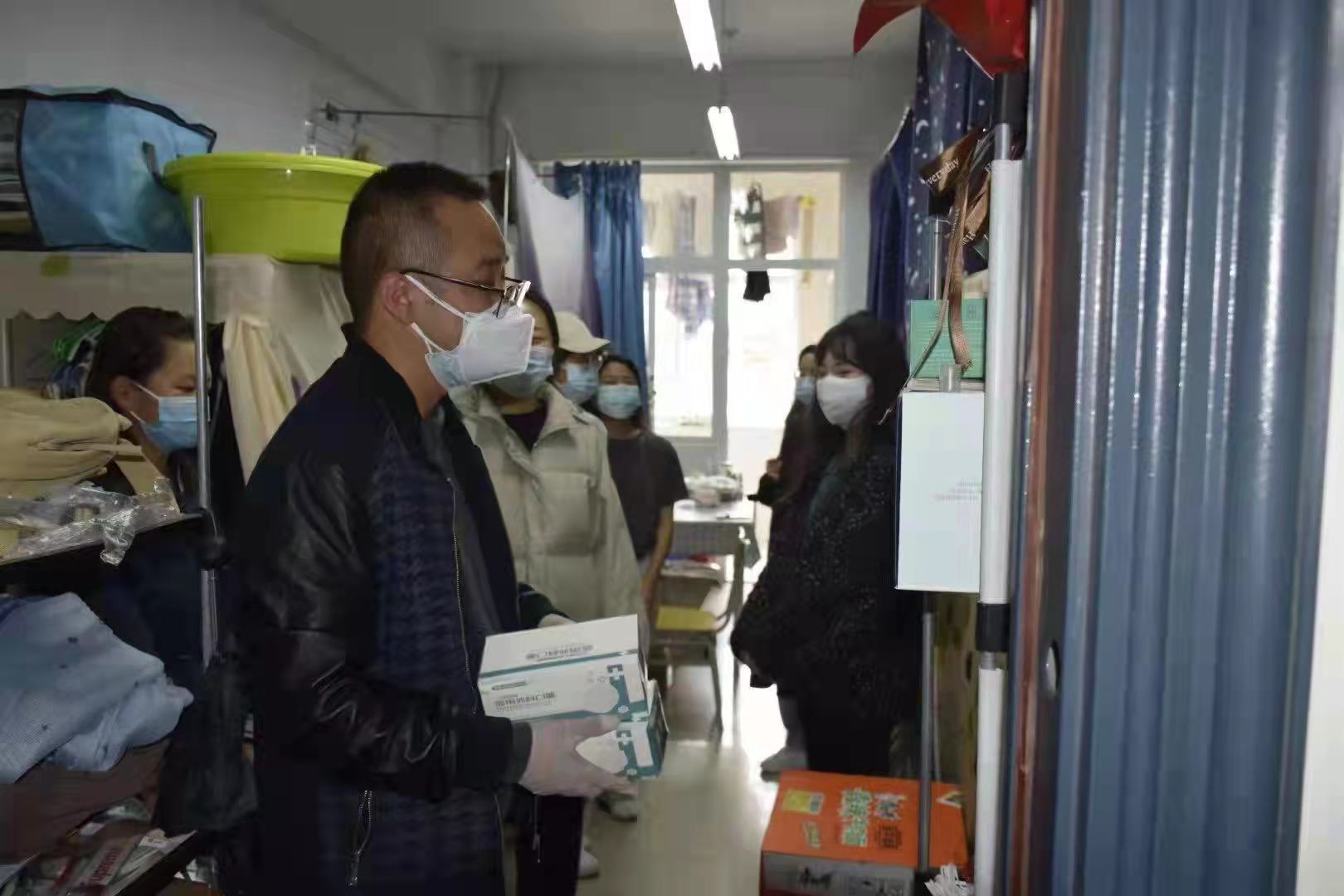 北校区被封控管理的八号楼女生公寓,成为了全校师生关注的焦点。在学校的组织下,八号楼公寓圆满的完成了三次核酸检测工作。在校领导的安排下,电信工程学院党总支副书记柴明喜组织全体党员及志愿者为八号公寓的本院学生发放泡面、矿泉水、面包等慰问物资。