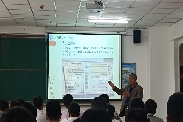 首先在301教室王老师就电气化铁道相关知识向同学们做了全面讲解,从电力机车的角度向同学们进行了阐述,并以生动形象的例子为同学们着重讲解了电力机车与动车的区别,向同学们介绍了关于不同的高铁D字母开头与G字母开头的原因。同时,从动力机车的特点向同学们引出了关于接触网、劈相机、断路器、互感器等相关知识,从牵引供电回路引出牵引变电所,并且对其做出了详细介绍。