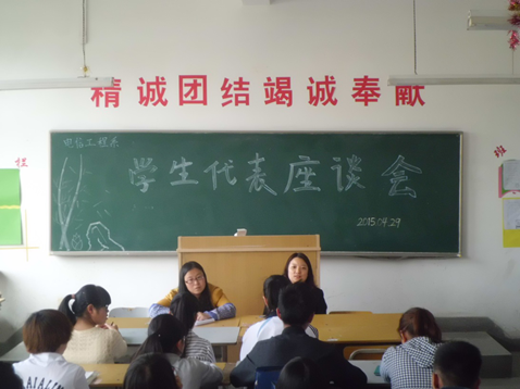 2015年4月29日中午12:30分,电信工程系分别在1006教室和1010教室组织召开了学生代表座谈会,电信工程系副主任郭丽君及各班学习委员和部分学生代表参加了此次会议。