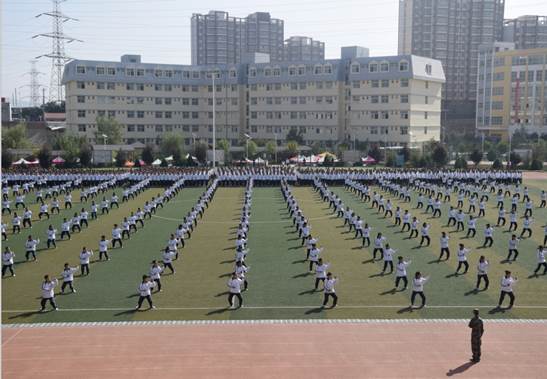 开学典礼后,2017级新生进行了军训汇报表演。由军训学员组成的一个个方队迈着整齐的步伐,高喊嘹亮的口号,英姿飒爽、精神抖擞地通过检阅台。女子方队、男子方队、心理健康操方队、男子擒敌拳等精彩的内容展示了他们12天来刻苦训练的成果,博得了主席台领导们和在场观众的阵阵欢呼与掌声。