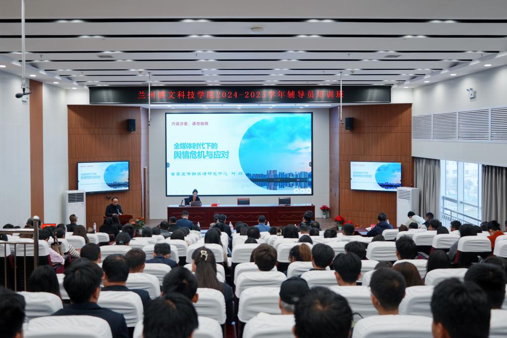 为进一步提升学校网络舆情分析与应对能力,构建和谐稳定的校园网络环境。10月25日下午,学校邀请甘肃省委宣传部舆情研究中心主任叶颖做专题讲座。学校副校长刘德光、学生处处长刘秀星、马克思主义学院院长王丽华、各二级学院学生管理副院长、全体辅导员、学生处全体人员参加讲座。讲座由刘秀星主持。