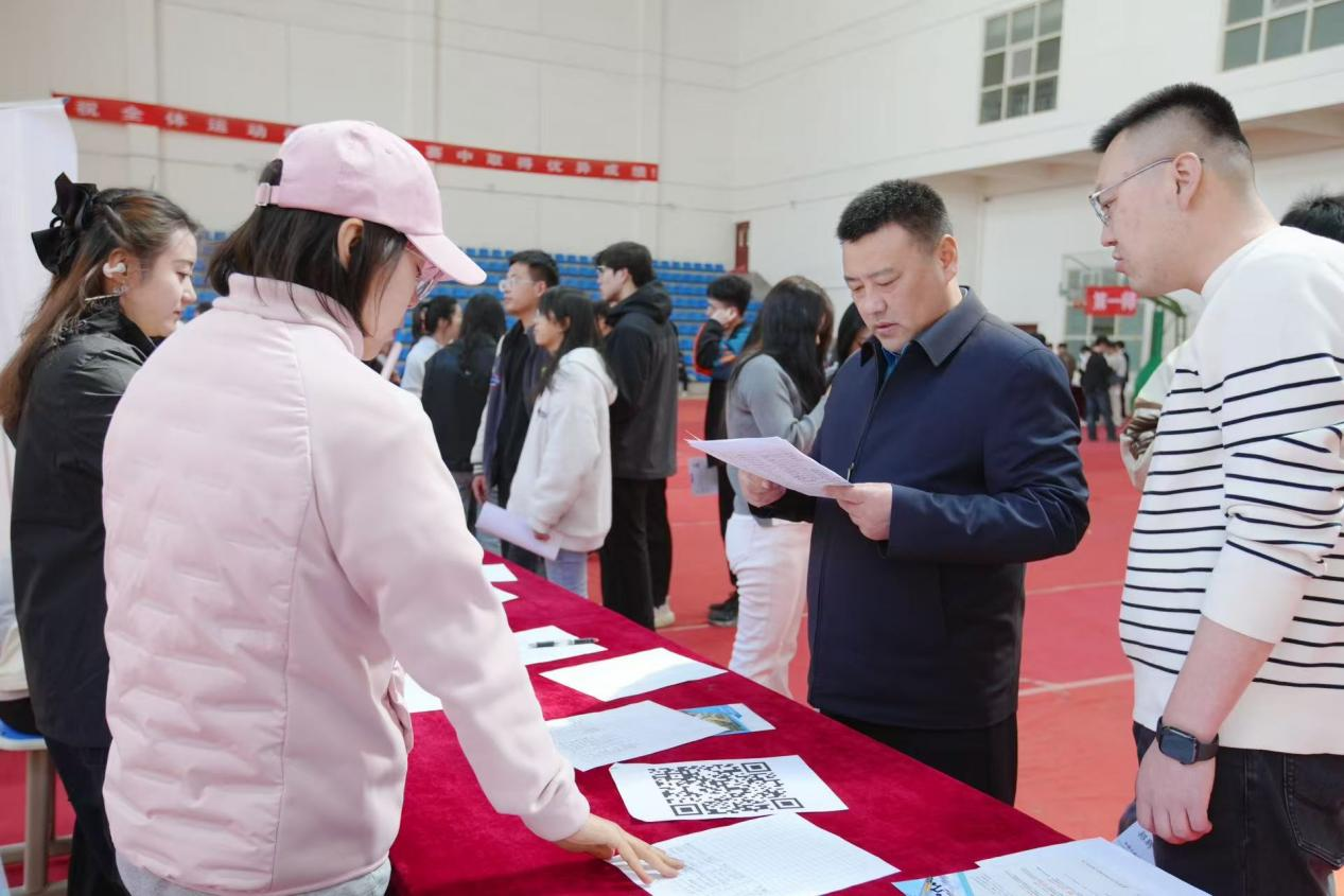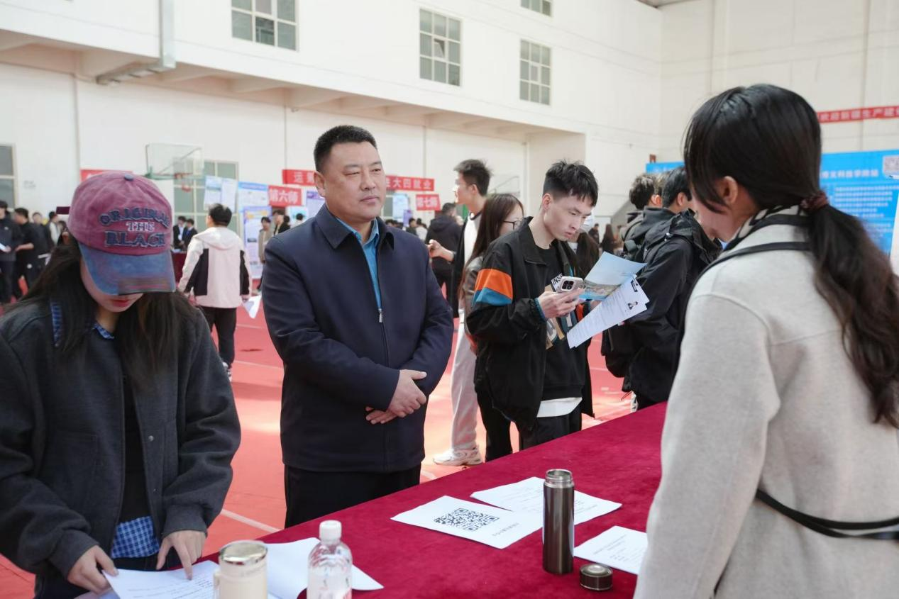 学校副校长郭宝军在现场详细了解企业招聘需求及毕业生投递情况,并与用人单位代表、毕业生亲切交流。他强调,此次招聘会既是落实国家“稳就业、保就业、促就业”政策的重要实践,也是学校推进产教融合、服务区域经济发展的具体行动,希望毕业生把握机遇,积极投身国家建设,同时期待与更多企业建立长效合作机制,共育高素质人才。