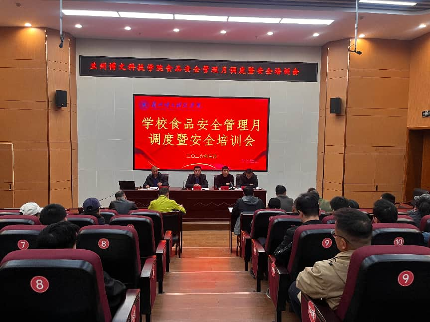 为深入落实校园食品安全主体责任,规范食堂运营管理,切实保障全体师生饮食安全卫生,3月6日下午,学校后勤处召开了春季学期食品安全月调度及从业人员专题培训会议,校党委委员、副校长郭宝军,后勤处负责人及学校食堂、超市的从业人员参加会议。