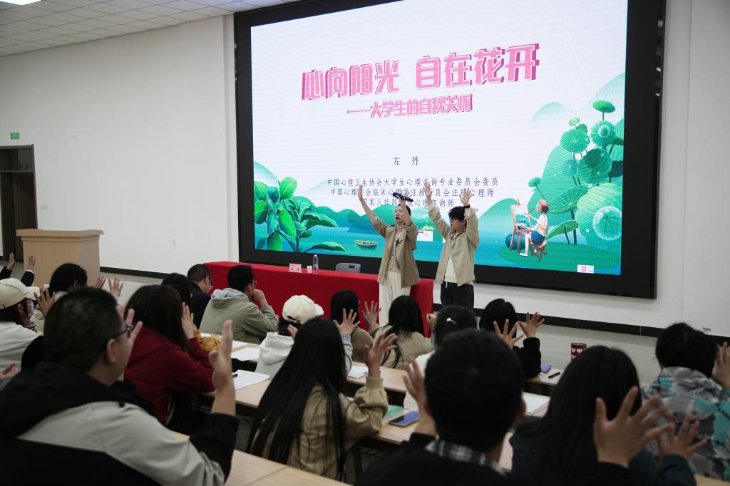 在讲解过程中,左教授着重引导同学们正确认识自我、合理表达情绪、积极寻求帮助、建立良好人际关系。鼓励大家以乐观、理性、包容的心态面对学习与生活中的困难挑战,培养自尊自信、理性平和、积极向上的健康心态。现场氛围轻松热烈,同学们认真聆听、积极互动,不少人表示收获满满,学到了实用的心理调节方法。