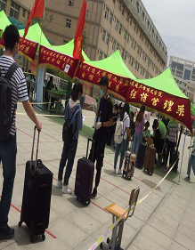 在校门口的应急处置帐篷内,我院各系老师深入一线,逐个对同学们的健康状况进行复测,测量体温完全符合后即可进入校园。学生报到注册点,每个系都撑起了大大的遮阳伞,为排队报道的学子们遮阳挡雨。