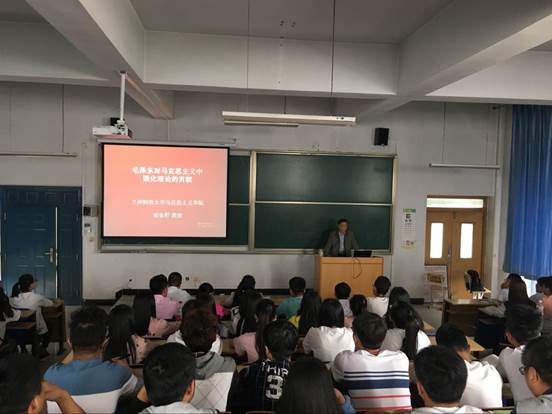 2017年5月24日下午,兰州财经大学马克思主义学院胡金野教授受邀来我院做专题讲座,主题为“毛泽东对马克思主义中国化理论的贡献”。基础课部思想政治理论课教研室部分教师和2015级通信工程、计算机科学与技术、网络工程专业的同学聆听了本次讲座。