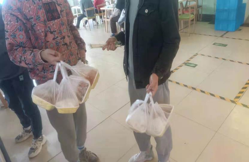 部分同学需要在宿舍进行为期半个月以上的健康检测和集中隔离。为克服疫情给学生的学习和生活带来的不便,我院倡导:‘携手抗疫情,爱心送温暖’。号召团学会成员积极参与送餐,志愿者的关心关爱给予被隔离学生有效的心理抚慰,使他们能理解和支持学校的防疫工作,同时也把‘传承雷锋精神,竭诚服务群众’的信念记于心、落于行。在实践中得到锻炼和提高,有利于营造和谐向上的校院氛围。