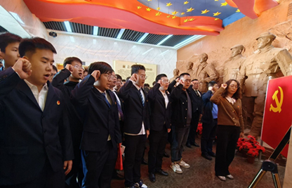 向人民英雄敬献花篮仪式结束后,全体师生前往到红星照耀中国纪念馆。面向鲜红的中国共产党党旗,机电工程学院党委书记、院长苗莉老师举起右拳,带领青年学生们重温入党誓词,铿锵有力的宣誓声响彻大厅。“我志愿加入中国共产党,拥护党的纲领,遵守党的章程,履行党员义务,执行党的决定,严守党的纪律,保守党的秘密,对党忠诚,积极工作,为共产主义奋斗终生,随时准备为党和人民牺牲一切,永不叛党。”80个字的入党誓词,包含了党的性质、宗旨、纲领、目标等,从党的十二大写入党章沿用至今,是共产党人初心使命的集中体现。更是通过对党史知识深入学习,加强对广大青年的理想信念教育,引导广大青年树立共产主义远大理想,坚定中国特色社会主义共同理想,坚定听党话、跟党走的政治信念,在强国建设、民族复兴的历史潮流中确立正确的人生目标,为一生的奋斗奠定基石。