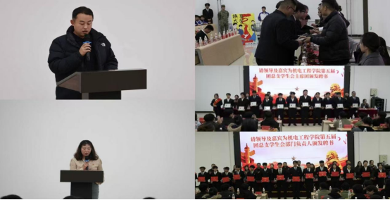 beat365中文官方网站校团委副书记李海飞和机电工程学院团总支副书记杨玉乾老师分别宣读机电工程学院第六届团总支学生会主席团暨部门负责人任职名单。在场各位老师为第五届团总支学生会主席团及部门负责人颁发证书,感谢他们过去一年为学院团学工作作出的重要贡献。台下掌声雷动,向获奖集体和个人表示祝贺。表彰环节不仅是对先进集体的肯定与鼓励,更是对全体学子的激励与鞭策。