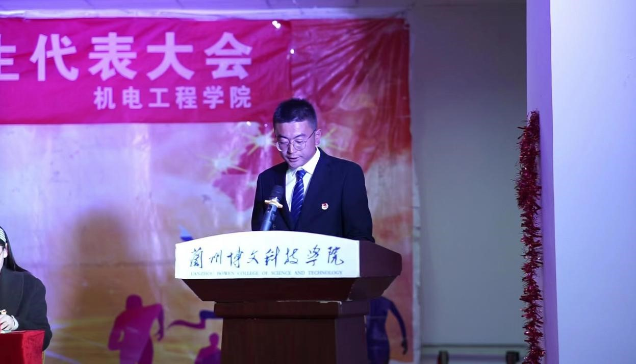 苗莉院长代表机电工程学院向本次学生代表大会的顺利召开表示热烈的祝贺!向莅临本次大会的领导、老师以及各位学生代表表示衷心的感谢和热烈的欢迎!苗莉院长在致词中强调:“开好本次大会,对于进一步加强和改进本院学生组织管理体制,规范团学工作行为,加快本院建设和发展,有着十分重要的意义。”
