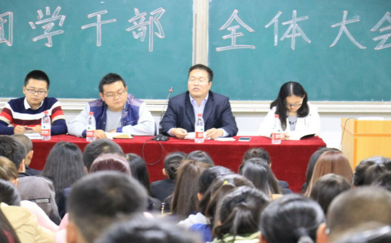 会议首先由学生管理副主任宋国军发表讲话,一是要求全体学生干部要处理好工作与学习的关系,在努力学习专业知识的同时,努力提升自身的工作效率。二是,针对学生的安全问题,尤其是如何保护人身财产安全、防盗防骗作了强调,希望全体学生干部提高自我安全保护意识,了解和掌握基本自救技能。三是,要求全体学生干部时刻起到先锋模范作用,起到学校和学生之间的桥梁和纽带作用;以集体利益为重,严格要求自己,遵守校纪校规,本着为同学服务、锻炼自身能力的目的做好本职工作。