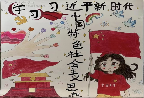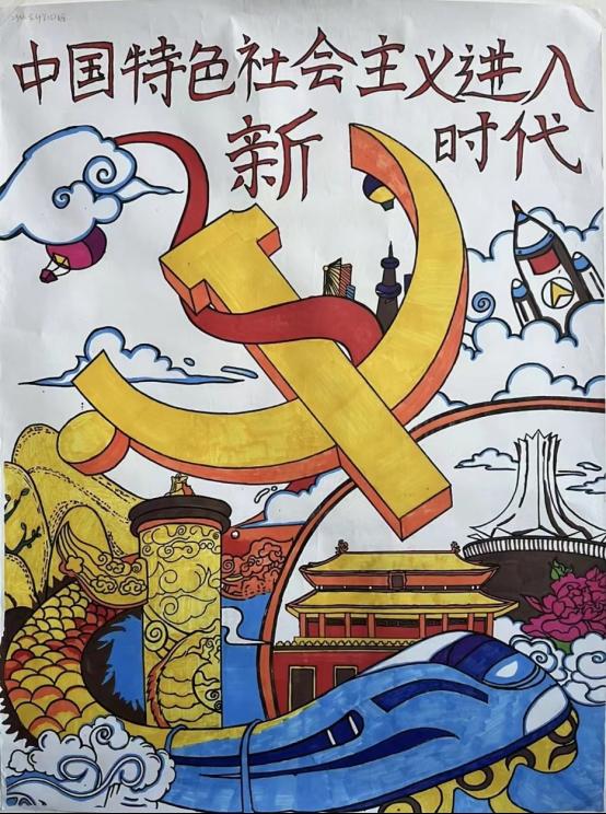 各参赛班级提交参赛作品后,经学院评委综合评审,评选出优秀作品13幅,其中一等奖一幅;二等奖两幅;三等奖十幅,并对获奖作品进行展览。在展会上,书画作品形象生动地向广大师生展现出了习近平新时代中国特色社会主义思想的魅力,用画笔和文字呈现出对习近平新时代中国特色社会主义思想的理解和领悟。