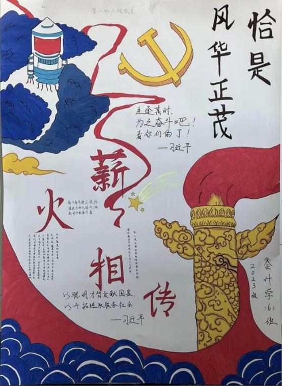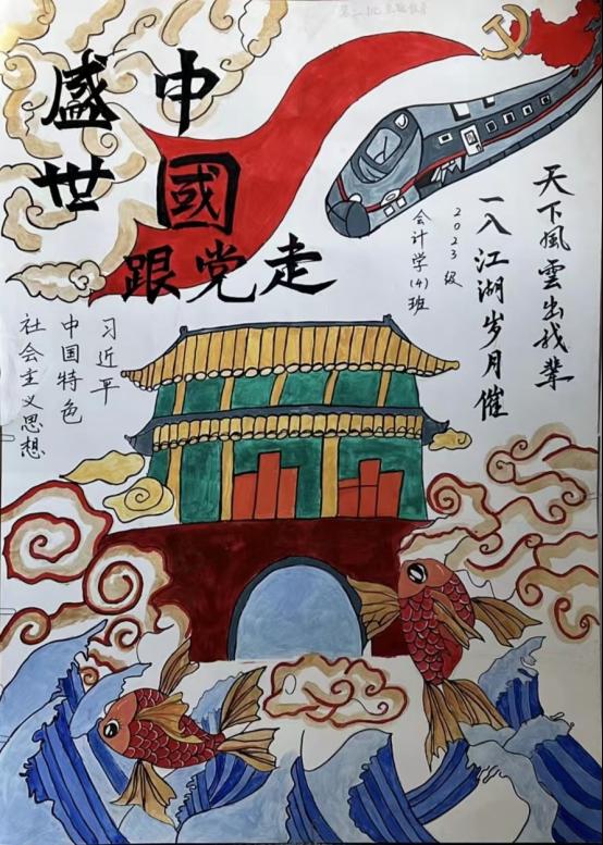 为学习贯彻习近平新时代中国特色社会主义思想,深入开展主题教育学习,建设文化校园,经济与信息管理学院于2023年11月-12月举办“学习贯彻习近平新时代中国特色社会主义思想主题教育—主题板报及书画展”活动,我院2022、2023级全体学生参加了此次活动。本次活动以板报和书画展的形式进行,旨在深入学习贯彻习近平总书记关于文化、教育的重要论述,进一步推动校园文化建设,提高师生文化素养和审美水平。