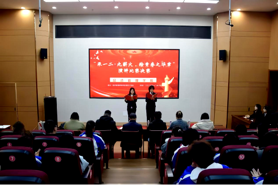 为纪念“一二·九”运动90周年,厚植当代青年学子的爱国情怀与责任担当,引导广大学生传承红色基因、勇担时代使命,经济管理学院于2025年12月15日在北校区小报告厅成功举办“承一二·九薪火,绘青春之华章”主题演讲比赛。经济管理学院学生管理副院长刘炳田、党委副书记谭成杰、辅导员老师郭瑞婷、张文魁、何振艳、李艳霞莅临现场并担任评委,各班学生代表参与本次比赛。