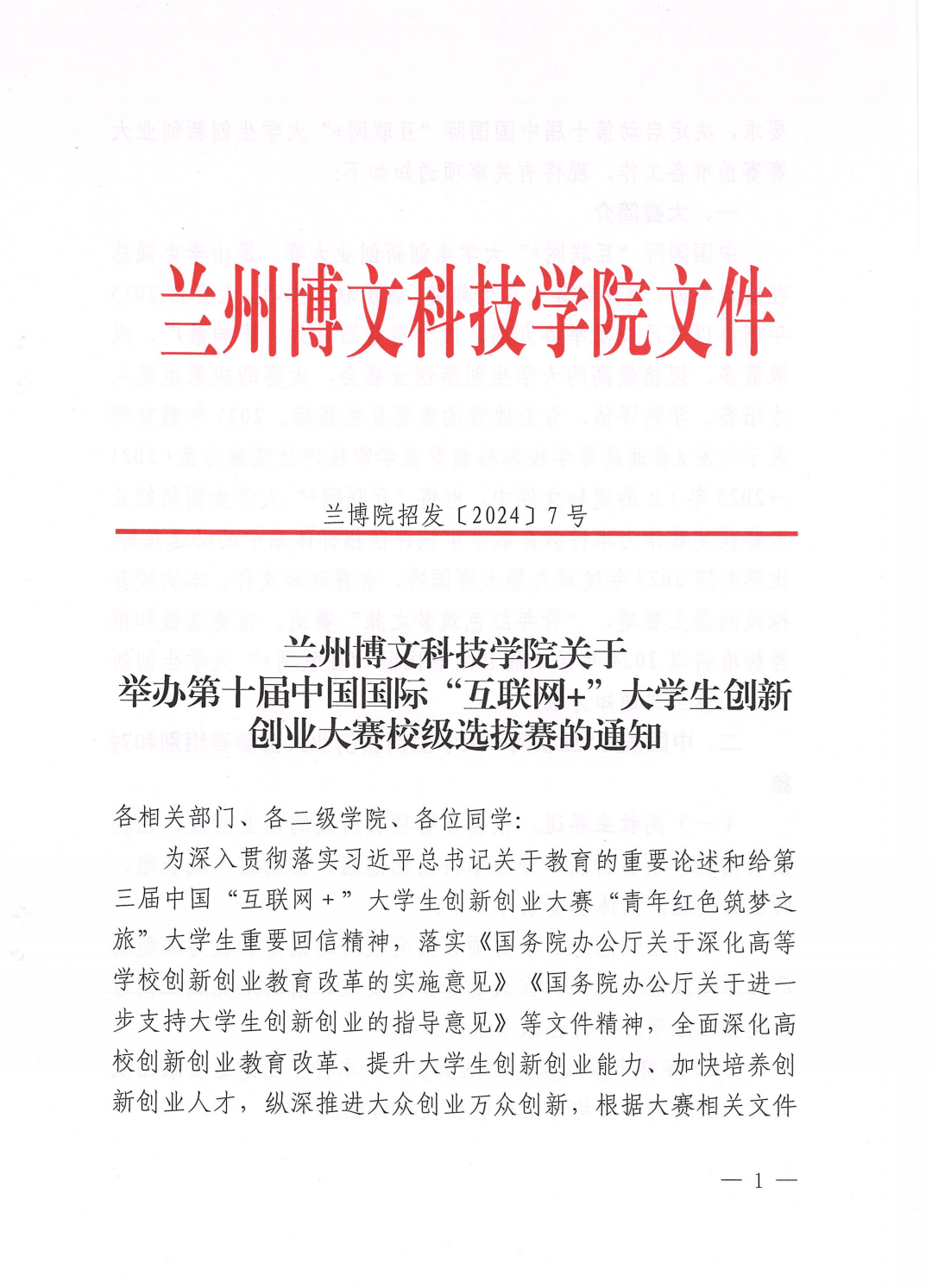beat365中文官方网站关于举办第十届中国国际“互联网+”大学生创新创业大赛校级选拔赛的通知