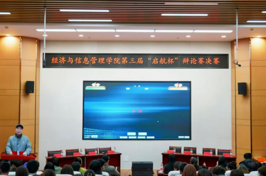 为促进知识的传播与深度理解,激发同学们的创新思维,丰富校园文化生活,经济与信息管理学院于12月12日晚在综合教学楼小报告厅举行了第三届“启航杯”辩论赛决赛。出席本次比赛的有经济与信息管理学院学生管理副院长刘炳田、团总支常务副书记唐凌洁、辅导员谭成杰、徐皓卿、瞿佳琪、许健葳、田园、梁飒飒、以及学院特别邀请到丁玉琴、王满、张庭琪三位老师和大学生辩论协会理事长刘鹏。24级信息管理与信息系统班、财务管理(1)班、会计(4)班的全体同学也积极参与其中,为辩手们加油助威。