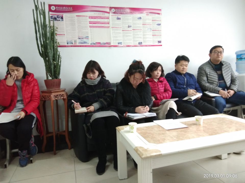 为做好新学期准备工作,保证教学管理工作和学生管理工作有序进行,经信管理系于2019年3月1日在教学楼1017办公室召开开学初准备工作会议,会议由郭斌主任主持,经信管理系全体教师参加会议。 会上,首先传达了教育部、省教育厅和学院有关会议精神,指出面对当前高等教育发展的新形势,教师要紧跟时代潮流,深入研究教育教学发展的新思路、新要求,了解学科前沿动态,严谨学术规范,不断提升自身科研能力与学术水平。