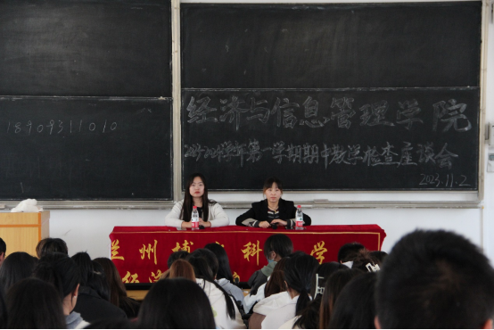 为提高教学质量,促进学生发展,经济与信息管理学院于2023年11月2日中午12点30分在教学楼西T2教室举办了期中教学检查座谈会。经济与信息管理信息院副院长陈学红、教学秘书张燕、2020至2023级各班班委参加此次座谈会。