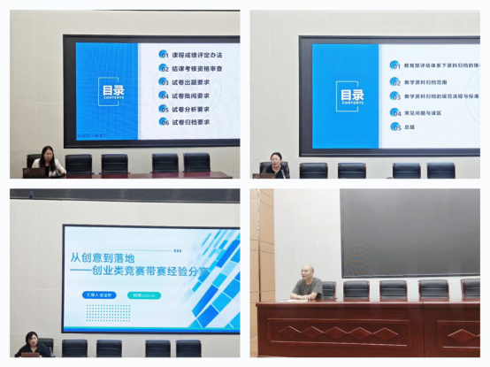 次日,会计学教研室主任付海庆围绕“考试相关业务”进行培训,规范考试流程;投资学教研室主任李春丹开展“合格评估教学资料整理要点”培训,为迎接评估工作夯实基础;专职教师张亚轩带来“学科竞赛与教学融合”分享,探索以赛促教新路径。