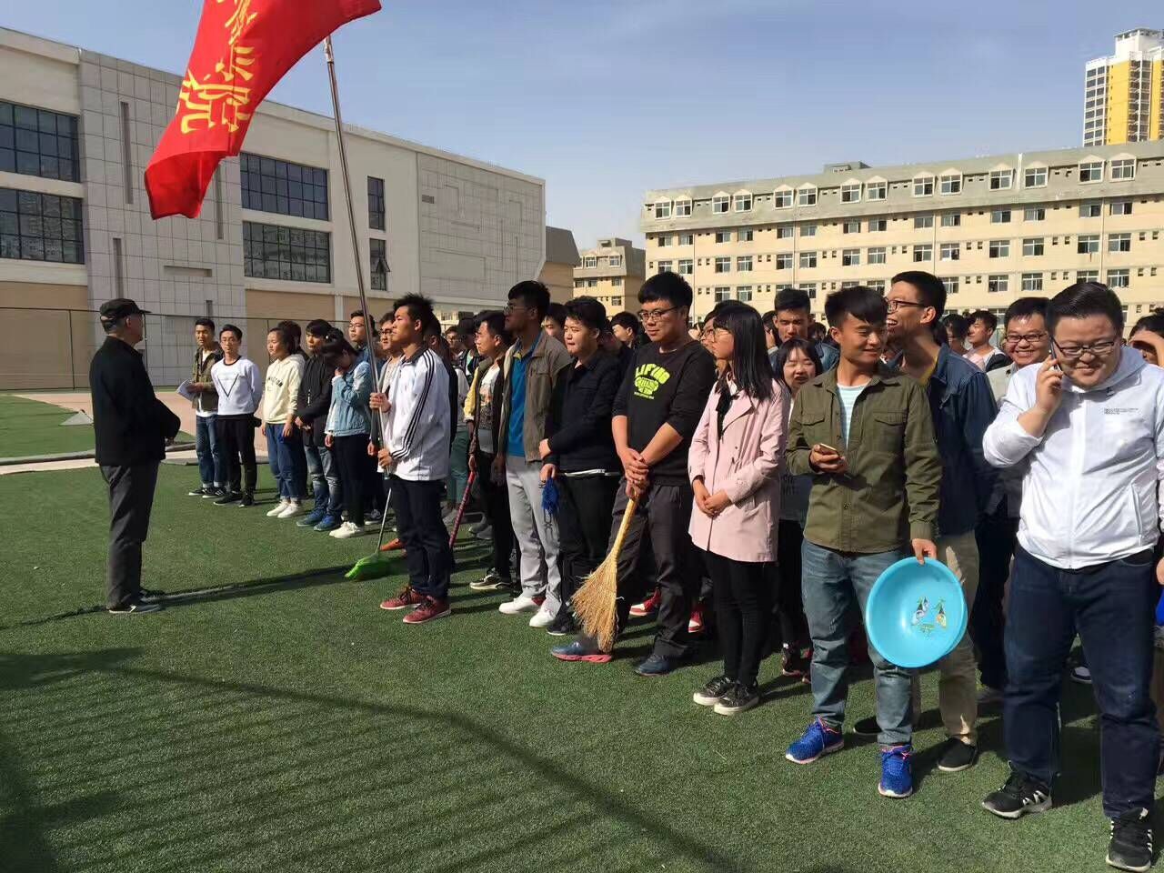 党总支书记谢利民对本次活动进行了动员,简洁地阐述了活动的目的和意义,然后副书记梁婷婷对本次活动的具体实施作了详细的部署安排。面对主席台上布满灰尘的椅子,党员、预备党员、入党积极分子,展开了地毯式清理,有的拿着水管冲,有的用抹布擦,有的清除过道垃圾,虽然有的同学溅湿了裤脚,流下了汗水,但没有一个人怕脏、说苦,观众台上呈现出了一幅热火朝天的劳动场景。