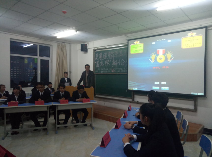 唇枪舌战展辩论风采,神采飞扬现辩论精神。为了丰富同学们的课余文化生活,培养大家的思辨能力和语言表达能力,交通运输系第三届“晨光杯”辩论赛经过近一个月如火如荼的比拼,终于迎来了冠军之争。 2017年11月21日19:00,由交通运输系组织举办的“晨光杯”辩论赛总决赛在北校区综合教学楼801教室隆重举行。出席本次辩论赛的老师及评委分别是:辅导员安永刚、团学会主席姜世乾、团总支常务副书记李旭、团学会副主席李伟、周佳玮,团总支副书记刘梅、苗阳。赛事在团学会的组织下顺利进行。 参加本次辩论赛决赛的两支队伍分别是:正方代表队2016交通工程(2)班和反方代表队2017交通工程(2)班,他们分别以人工智能更有可能毁灭人类和人类自己更有可能毁灭人类展开辩论。辩论赛在一阵掌声中正式开始,风采展示环节双方辩手都措辞严谨,独出心裁。在开篇立论和攻辩环节中,双方辩手旁征博引妙语连珠,充分展现了他们超强的逻辑思维能力。随后进入最精彩的自由辩论环节,双方辩手你来我挡,舌绽莲花,激情高昂,此起彼伏,赢得了阵阵掌声。在总结陈词环节过程中,双方辩手再次对己方和对方的观点和标题进行了重申、证明与肯定,让大家印象深刻。最后,由辅导员安永刚老师对本次比赛进行精彩的点评。