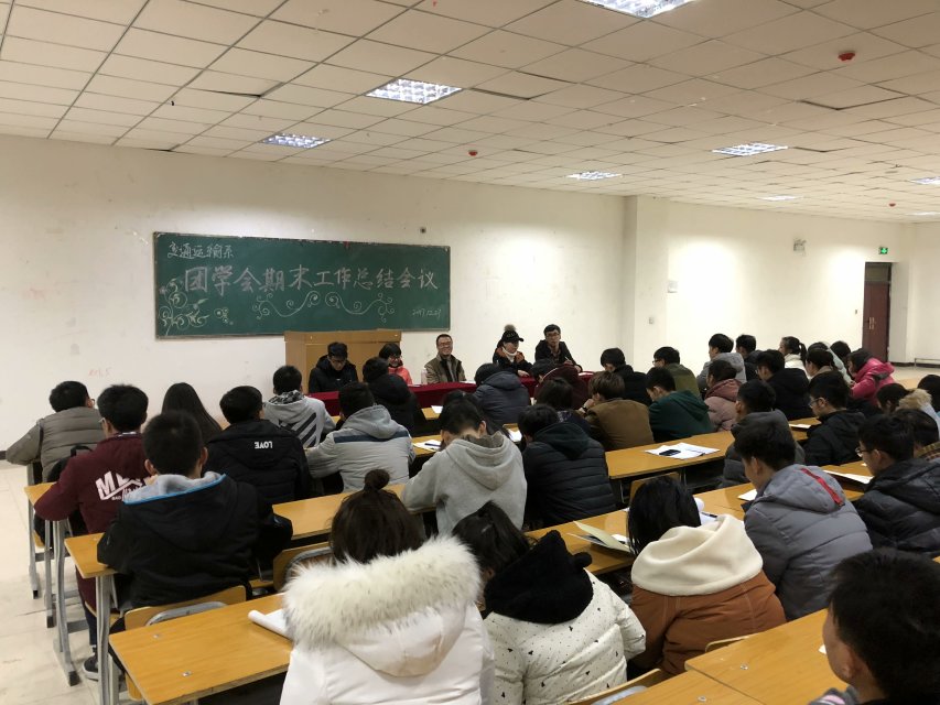交通运输系2017年12月27日晚上7时在学院体育馆208室召开了团学会工作总结会议,辅导员安永刚老师、杨紫尧老师,班主任马睿老师,团学会全体成员出席了本次会议。 总结大会由团总支常务副书记李旭主持,团学会主席姜世乾对系团学会本学期的工作进行总结。系团学会在系党总支和系行政的领导下,经过全体同学的共同努力,取得了优异成绩。系团学会能有计划地进行学习,特别是党的十九大胜利召开,认真学习十九大精神,积极为全系学生服务。系团学会本学期顺利地进行了改选,增加了新鲜血液;积极配合学院团学会,参加学院组织的各项学生活动,并取得了很好的成绩,如学院迎新杯篮球赛女子组第一名、排球赛男子组优胜奖,学院11.9消防知识竞赛团体第一名,学院12.9演讲比赛二等奖、12.9红歌歌咏比赛第二名等。但工作中也存在着些不足,如各部门之间缺乏沟通,工作缺乏主动性和创新。 辅导员安永刚老师对团学会本学期工作取得的优异成绩表示祝贺,也对团学会下一阶段的工作提出要求,强调团学会各部门之间要积极联系,相互合作;团学会成员要不断完善自我,以身作则,以更高的标准去完成团学会下一阶段的工作。最后,团学会成员对团学会的工作表达了自己的想法。