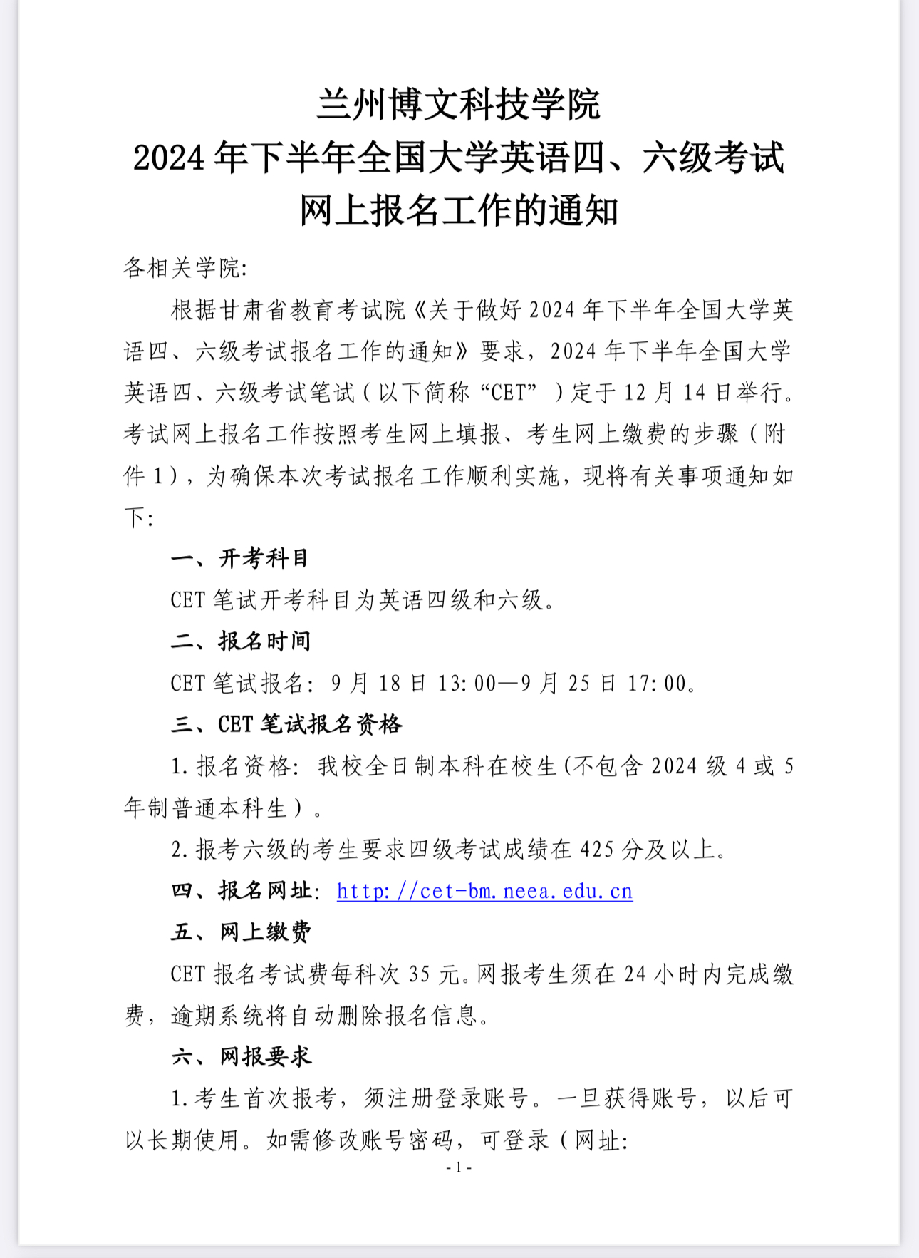 关于2024下半年四六级考试报名通知