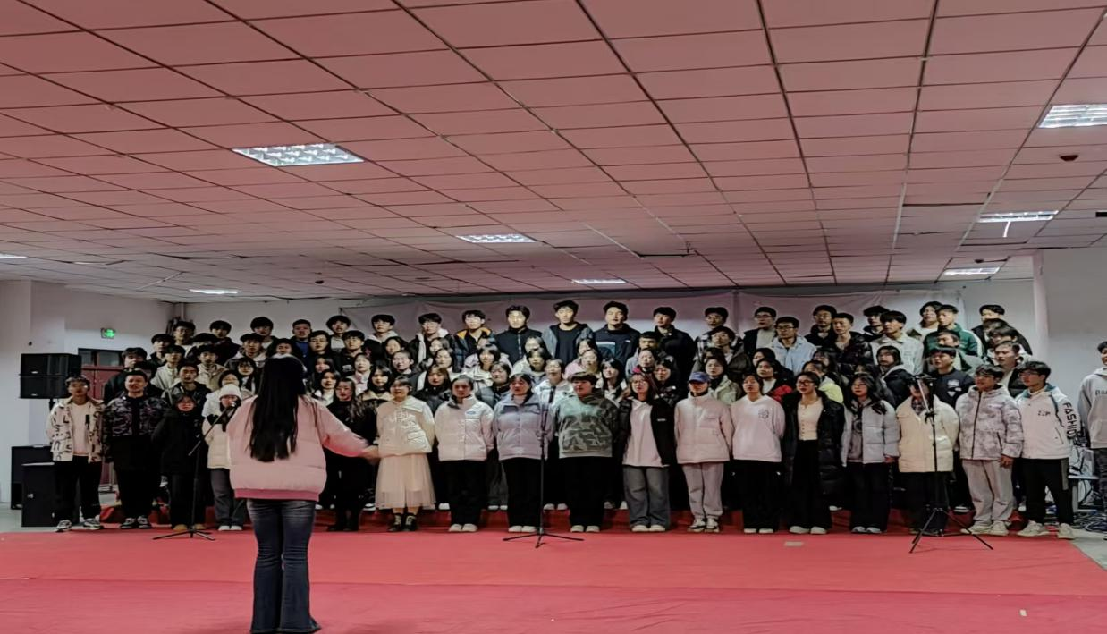 在排练过程中,我院团学会干部们悉心指导,从发声技巧到情感表达,对同学们进行了全方位的培训。同学们克服了学业繁忙、时间紧张等困难,利用晚自习以及课余时间认真排练,精益求精,力求将每一个音符、每一个动作都做到完美。