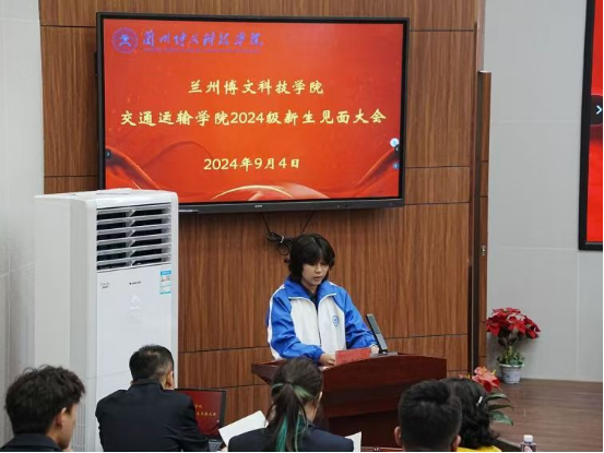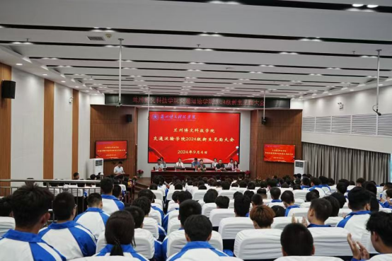 交通运输学院郭院长,交通运输学院院党委书记教学管理副院长王俊鹏,交通运输学院团总支书记学生管理副院长杨彪生,交通运输学院学科带头人王春生教授,交通运输学院教研室主任雒晓兵、贵彩虹、许金金、刘佳,交通运输学院实训中心负责人刘盼盼等学院全体教职工及2024级新生参加会议。