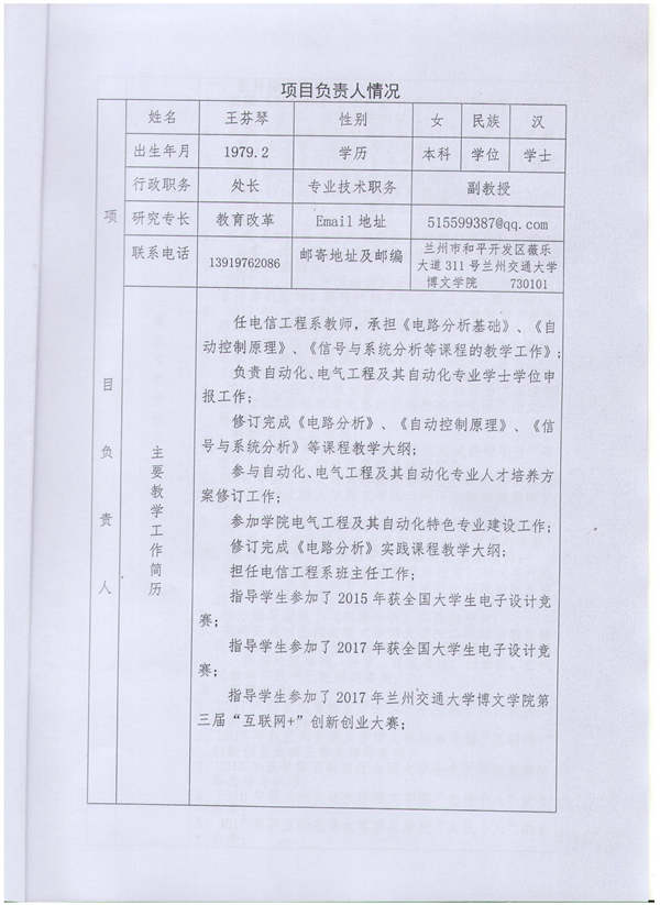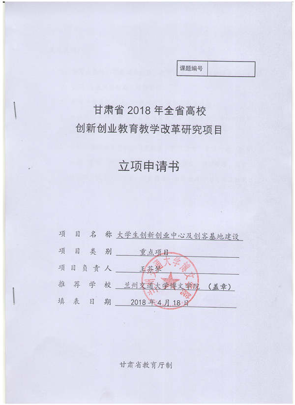 甘肃省2018年全省高校创新创业教育教学改革研究项目立项申请书