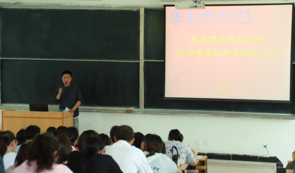 为确保我校校内考试工作顺利进行,严肃考风考纪,促进学校优良学风的形成,6月15日中午,beat365中文官方网站校内考试监考培训会在教学楼西T1和西T2教室召开,教务处、各院(部)及相关处室教职工参会。