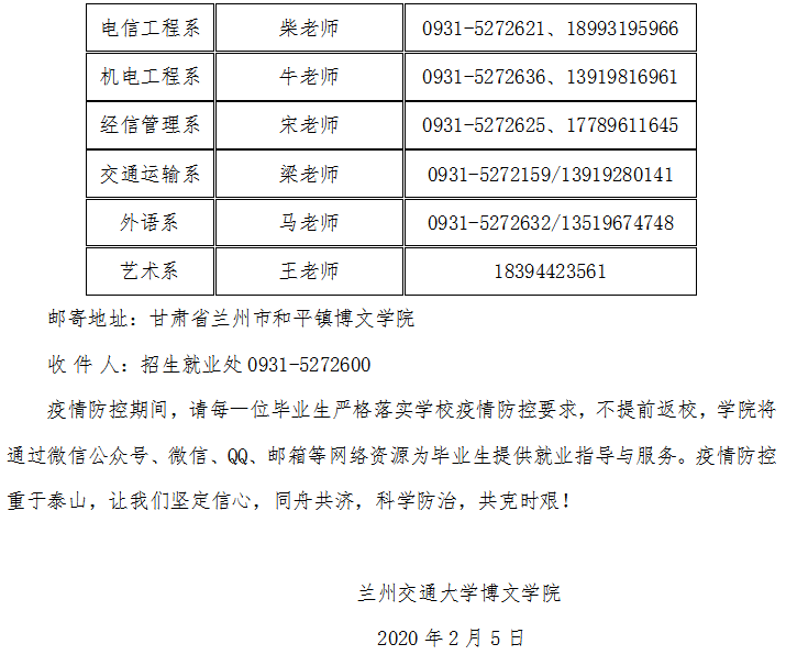 建议毕业生通过电话、微信、QQ等方式与学院招生就业处工作人员或各系学生管理副主任、辅导员等进行线上咨询。具体联系方式见后。