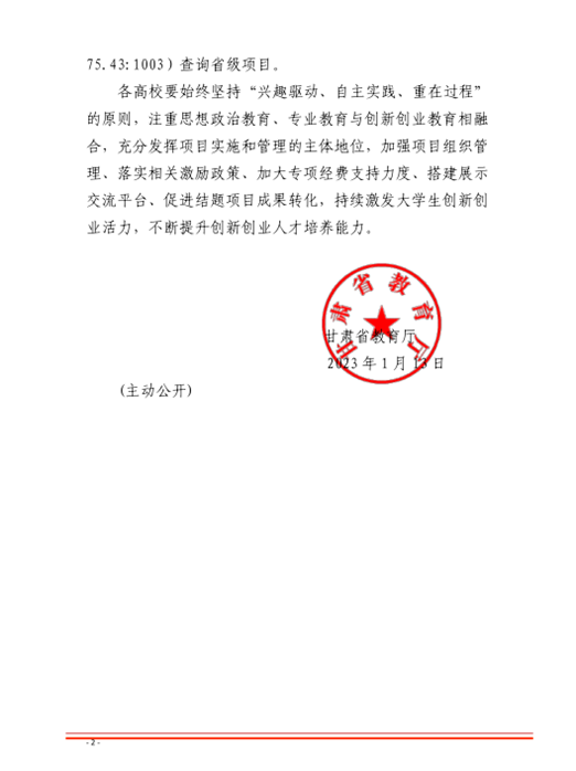 近日,甘肃省教育厅公布了2022年国家级省级大学生创新创业训练计划项目名单,我校20项项目获批立项,其中,国家级项目7项,省级项目13项。