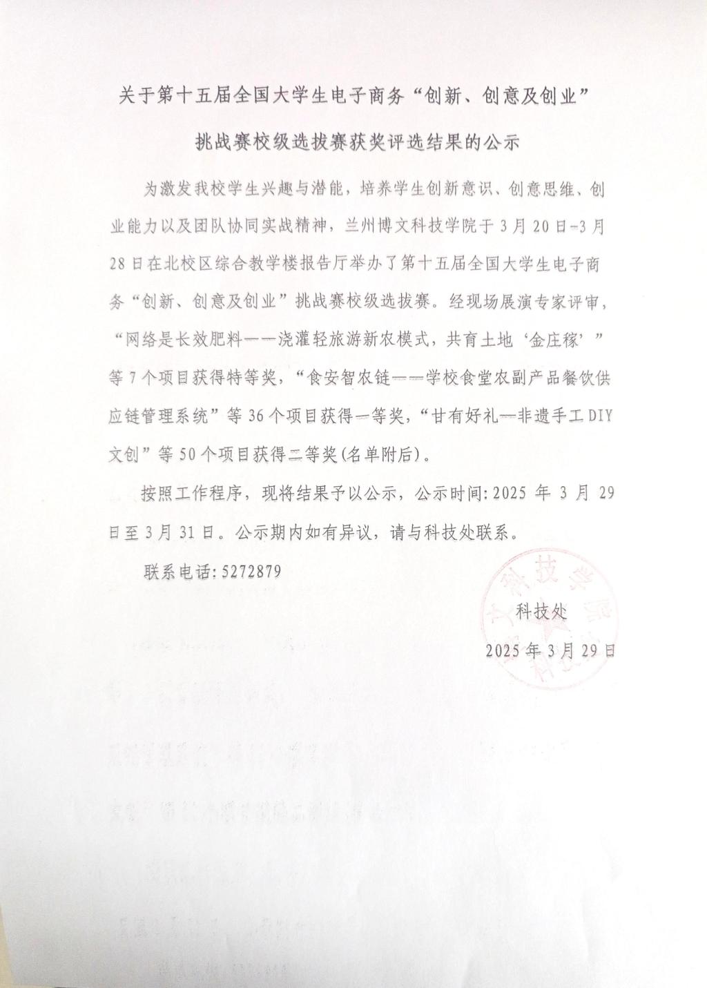 关于第十五届全国大学生电子商务“创新、创意及创业”挑战赛校级选拔赛获奖评选结果的公示
