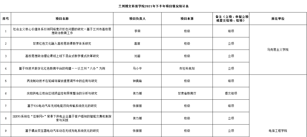 beat365中文官方网站2021年下半年项目情况统计表