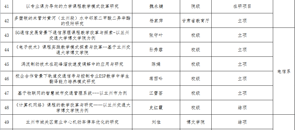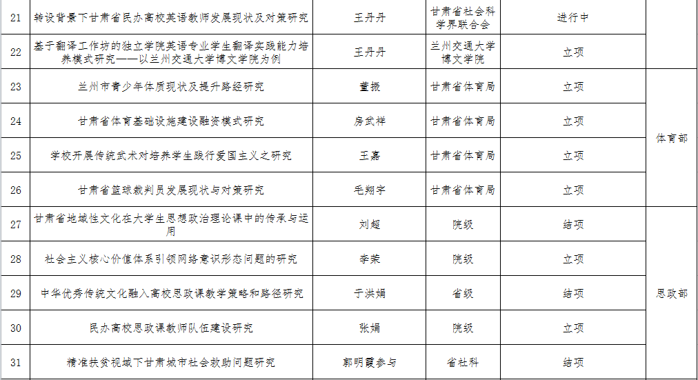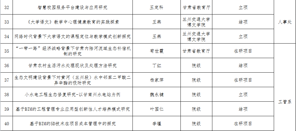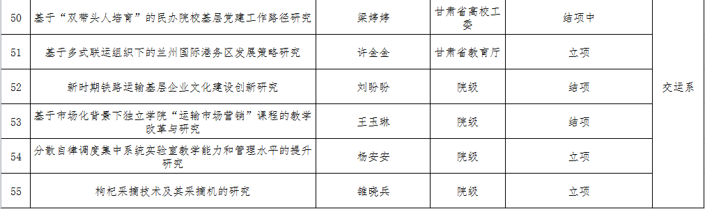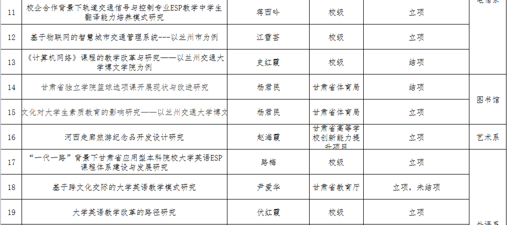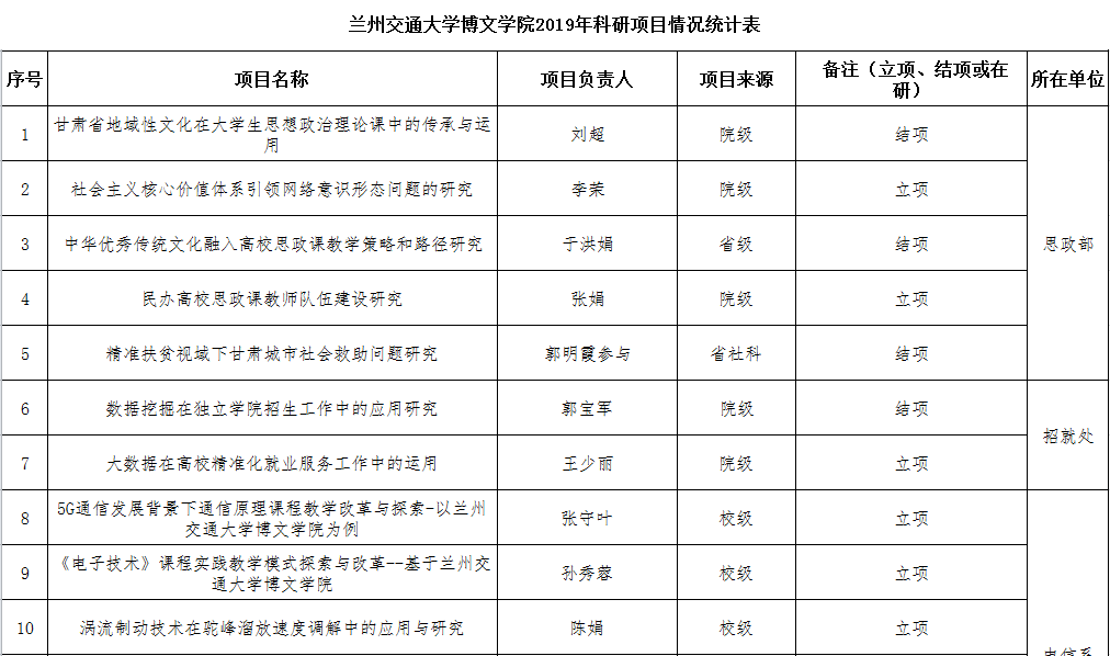 兰州交通大学博文学院2019年科研项目情况统计表