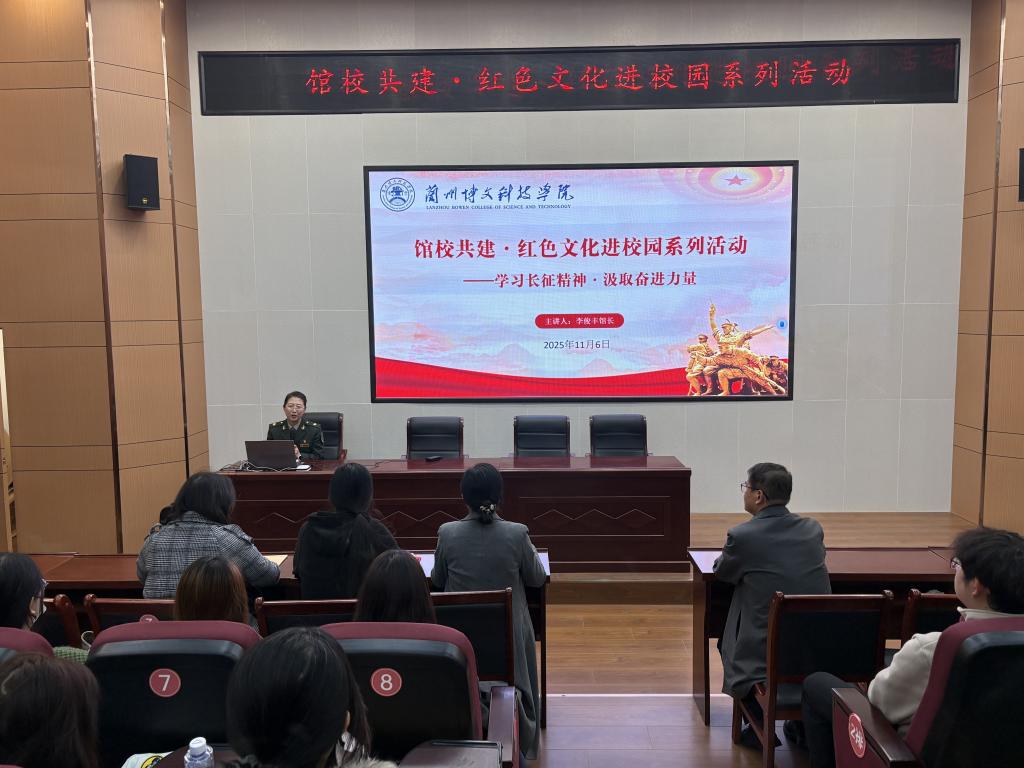 为深入学习贯彻习近平总书记关于传承红色基因、弘扬革命精神的重要论述,推动红色文化进校园、进课堂、进头脑,11月6日,我院特邀会宁红军长征胜利纪念馆到校开展馆校共建暨红色文化进校园系列活动。活动通过主题党课、展板讲解等丰富形式,让师生沉浸式感悟长征精神的时代价值,凝聚奋进力量。校党委书记阳红出席活动,学院全体思政课教师及学生代表现场参与活动。