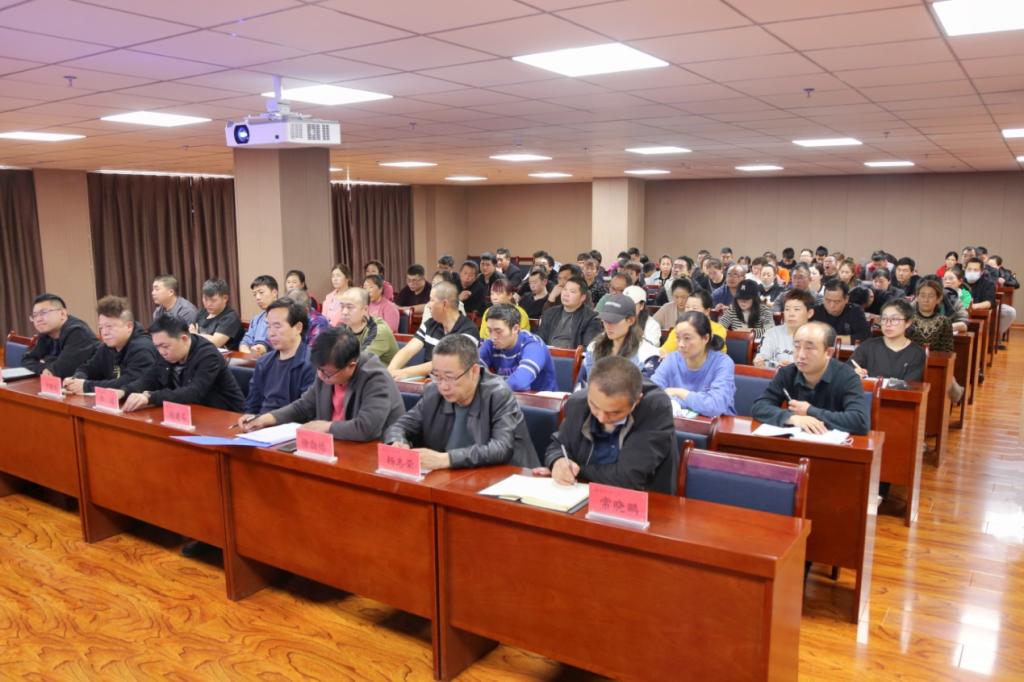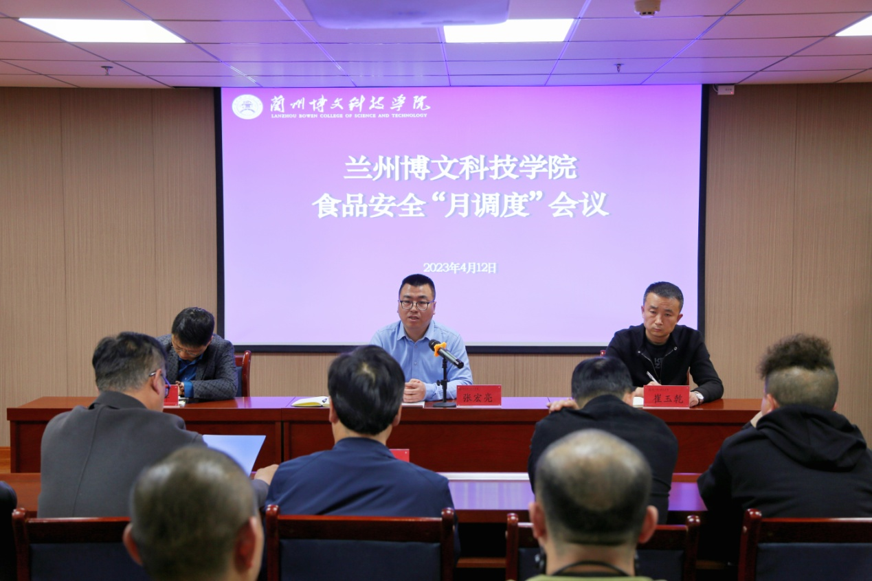 为贯彻落实省委、省政府关于“三抓三促”行动部署安排,省教育厅《关于继续开展全省大中小学校学生餐饮保障突出问题专项整治工作的通知》等文件精神,进一步加强2023年春季学期学校食品安全工作,严防严控校园食品安全,切实保障广大师生员工饮食安全和身体健康,4月12日下午,学校在培训楼8楼报告厅召开食品安全“月调度”会议。后勤工作分管副校长、后勤处食堂管理人员及南北校区食堂近百名从业人员参加会议,会议由后勤处处长、食品安全总监张宏亮主持。