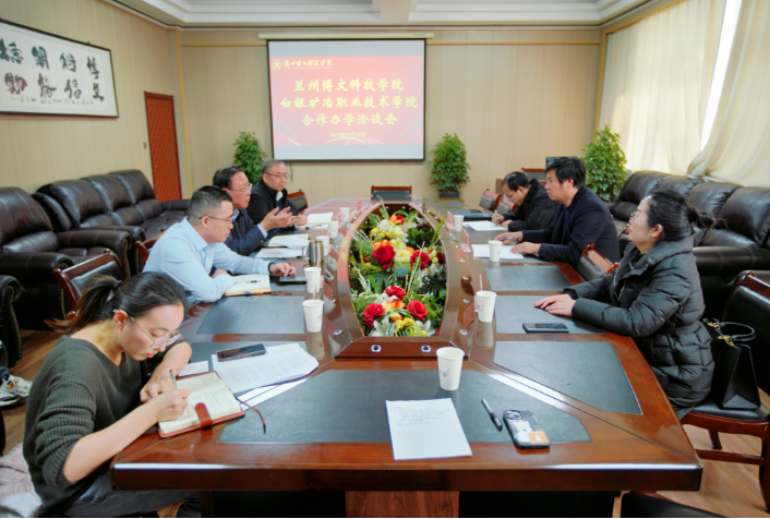 11月24日,我校与白银矿冶职业技术学院(以下简称白银矿冶学院)在11楼会议室举行了合作办学洽谈会。白银矿冶学院副院长李保华、党政办主任郭维峰、人事处处长魏春霞,校长陈彪、副校长燕宏、教务处、人事处及校办等领导出席。会议由陈彪主持。