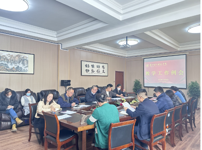 11月30日下午,2023-2024学年第一学期11月教学工作总结及12月教学工作部署会议在教学楼11楼会议室召开。副校长燕宏,教务处处长郭斌,各二级学院院长,教学副院长以及教务处相关工作人员参会。会议由郭斌主持。