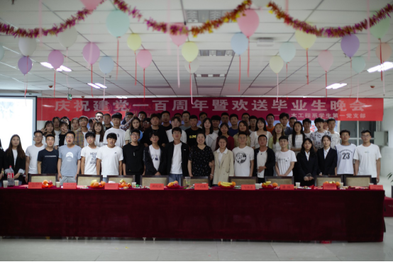 为庆祝中国共产党成立100周年,歌颂党的伟大成就,继承和发扬党的光辉传统和优良作风,土木工程系学生第一党支部于2021年6月15日下午7时举办了庆祝建党一百周年暨欢送2021届毕业生晚会。出席本次晚会的有土木工程系学生第一党支部书记叶鸿燕、土木工程系学生第四党支部书记顾松涛、院思想政治工作会代表,系学生党员工作站、团总支、学生会及创新创业工作室相关学生干部代表。
