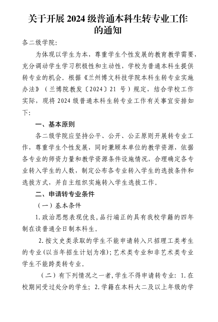 转发关于开展2024级普通本科生转专业工作的通知