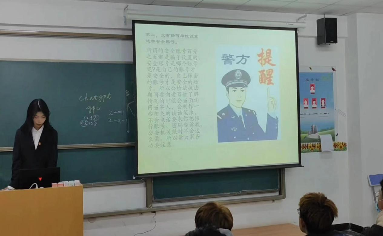为切实提高学生防范电信诈骗意识,提高学生的反诈能力,保障学生财产安全,我院于2023年3月21日至3月28日在北校区综合教学楼以班级为单位开展“反诈我先行,安全我来守”主题教育系列活动。