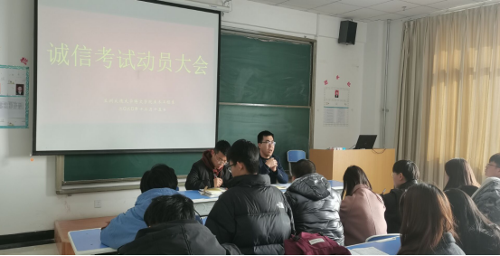 会上,叶主任强调,考试是对学生们平时学习成效的一次检验,也是对大学生行为素质和诚信准则的一次检验。希望同学们要认真对待,发扬拼搏精神,排除杂念,专心复习,积极备考;要谨记诚信是做人之根本,严守考纪,诚信考试,诚实做人,要发挥主观能动性,讲究学习方法,提高学习效率;要统筹兼顾,在做好学习的同时,进一步强化安全意识、环保意识,加强体质锻炼,做到全面发展。最后,叶主任预祝同学们在期末考试中展现出真实的学业成绩和良好的道德水平,取得理想成绩。