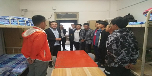 在走访过程中,老师们亲切地和同学们打招呼,并询问同学们都来自哪里。黄钰峰主任尤其关心衣食住行方面的问题,屡次询问初次来到兰州的同学有没有不适应的情况。王俊鹏主任鼓励同学们珍惜大学时光,努力成长成才。李敬元主任对同学们嘘寒问暖,提醒同学们注意天气防止感冒,并且嘱咐室友间要和谐相处互相帮助。黄主任十分关注同学们的人身财产安全,用心提醒同学们要谨防诈骗,不要随意相信推销信息。 老师和同学们的沟通让很多同学都平淡了离乡的滋味,积极投入到新生活中来。杨生浩老师作为新生班主任尤为关心同学们的生活,了解同学们住宿情况。