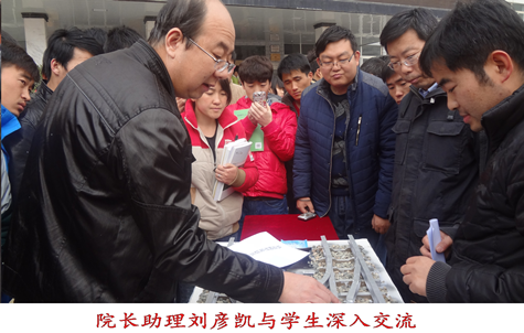 本次展览共展出19件作品,全部是由《铁道工程》授课老师金静指导完成,其中有8件有砟轨道和4件无砟轨道、7件道岔和桥面轨道作品,参展班级为2012级土木工程系学生。尽管天气寒冷,雪花纷飞,但同学们的热情火焰没有被浇灭,下课铃声响后,同学们不约而同的走向了我们的展览,惊讶的表情、赞叹的话语,体现了此次展览作品的优秀。制作作品的同学们守候在自己的作品前面,细心、热情地向领导、老师及同学们介绍着自己的作品和设计思路,让大家充分的了解他们的成果。