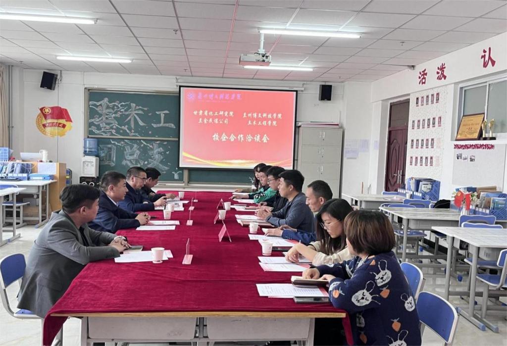 为深入推进教育部、省教育厅“全国高校书记校长访企拓岗促就业”专项行动,深化产教深度融合,促进教育链、人才链与产业链、创新链有机衔接,2023年5月15日beat365中文官方网站土木工程学院与甘肃省化工研究院兰金民爆公司在北校区综合教学楼1106会议室举行了校企合作洽谈会。