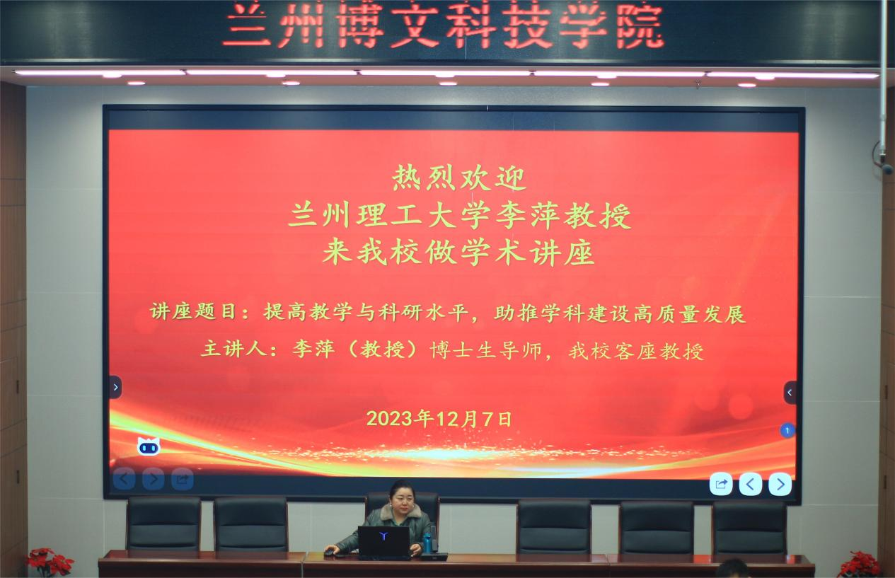 为提升我校青年教师的科研水平与学生的毕业设计(论文)撰写能力,进一步提高我校人才培养质量,助推学科建设高质量发展,2023年12月7日上午,学校邀请兰州理工大木工程学院李萍教授在综合教学楼12楼学术报告厅为我校师生作题为“提高教学与科研水平,助推学科建设高质量发展”的学术讲座。